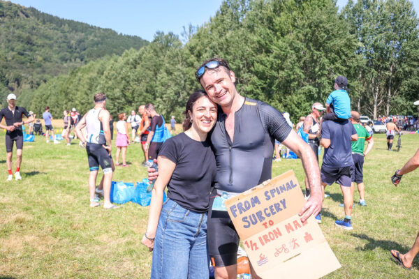 Cast your mind back to that sunny day last August when we had the most amazing weather for the Aberfeldy Middle Distance Triathlon. You might have been as intrigued as we were to spot a group of supporters cheering on someone who had been through spinal surgery and had now completed Aberfeldy Triathlon! Luckily for us, Fergus got in touch with us after the race to tell us his incredible story. If you are suffering from injury or back pain, take heart from Fergus’s story…